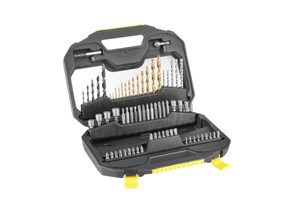 Set svedrov 70- delni STA7184 Stanley prejmete v trpežnem kovčku. Svedri so izdelani iz močnega kaljenega jekla. Garnitura vsebuje: - biti: standardni 1/4", združljiv z 1/4" ragljami - vrtalnik s cilindrično ročico - magnetno držalo 60 mm, 50 mm ploskovni bit: 4.0 in 6.0mm - Phillips 50 mm prečni komadi: 2 x PH1 - PH2 - PH3 - pozidriv 50-milimetrske prečke: 2 x PZ1 - PZ2 - PZ3 - torx 50 mm bitov: T20 - T25 - Phillips 25 mm prečni komadi: 3 x PH1 - 2 x PH2 - 1 x PH3 - pozidriv 25 mm prečni komadi: 2 x PZ1 - 2 x PZ2 - PZ3 - torx bitovi: 2 x T15 - 2 x T20 - T25 - T30 - 25 mm ploski biti: 2 x 4,0 - 2 x 6,0 - 7,2 mm - inbus bitovi (HEX): Hx3 - Hx4 - Hx5 - sveder za luknje v lesu - svedri za les: 3 -4 - 5 - 6 - 8 mm - zidarski sveder (opeka, opeka): 4 - 5 - 6 - 7 - 8 mm - svedri iz titana: 2 x 1,5 - 2 x 2,0 - 2,5 - 3,0 - 3,5 - 4,0 - 5,0 - 6,0 - 7,0 - 8,0 mm - ključavnice s šestrobo glavo (za uporabo v magnetnem držalu 1/4 "ali neposredno v izvijaču ali ročnem ročaju izvijača 1/4"): 4 - 6 - 7 - 8 - 9 - 10 - 11 - 12 mm