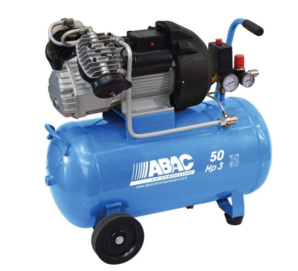 Batni kompresor ABAC V36/50 je namenjen domači in profesionalni rabi. Zanesljivo delovanje s številnimi pnevmatskimi orodji zagotavljata litoželezna cilindra. Posebna V oblika z dvema cilindroma omogoča visoko zmogljivost ob nizki porabi. Velika kolesa z dvema gumjastima nogama nudijo udobno, mobilno in stabilno delovanje.