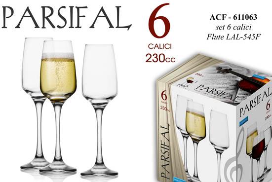 Set 6 steklenih kelihov za serviranje šampanjca ACF Parsifal s prostornino 230 ml. Kelihe lahko pomijete v pomivalnem stroju.