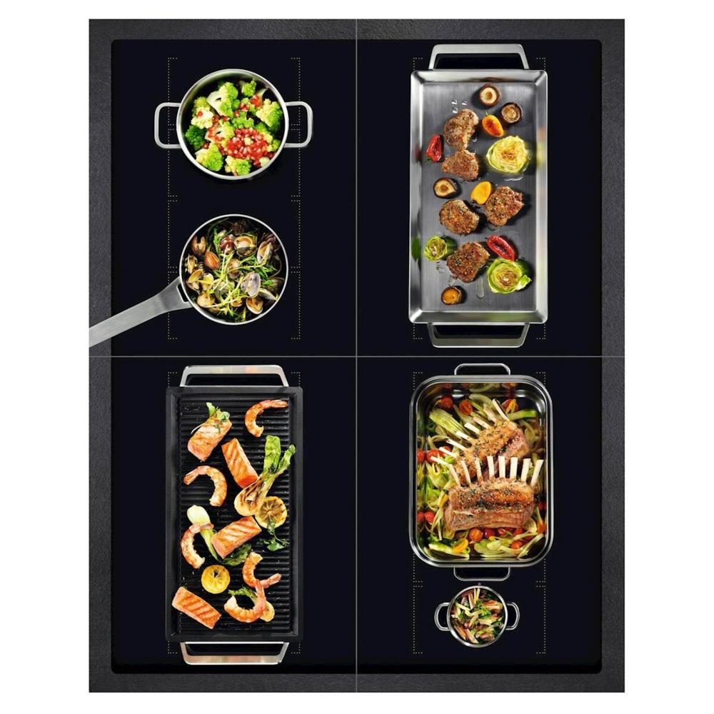 -: Funkcija FlexiBridge - Prilagodljivo indukcijsko kuhalno površino sestavljajo štiri področja. Področja lahko združite v dve kuhališči različnih velikosti ali v eno veliko kuhališče.