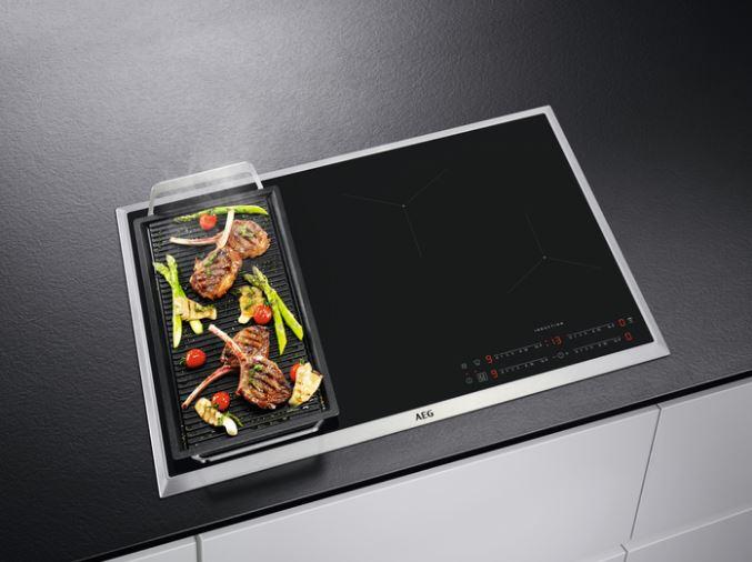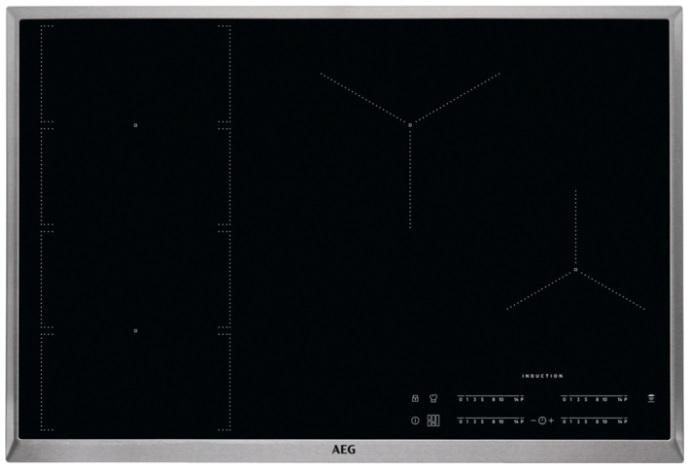 Indukcijska plošča AEG IKE84471XB širine 77 cm ima 4 kuhališča z možnostjo povečanja moči PowerBoost. Posebna leva kuhalna površina je razdeljena na 4 segmente, ki s pomočjo funkcije FlexiBridge dovoli, da izberete segmente, ki bi jih radi povezali skupaj in tako pridobili primeren prostor za posodo. Če veste, da bo kuhanje zahtevalo hitre in pogoste spremembe temperature, uporabite funkcijo PowerSlide, s katero premaknete posodo, ne da bi spremenili izbrani način z uporabo treh predhodno določenih temperaturnih nastavitev: visoka, srednja in nizka. Kuhalno ploščo odlikuje tudi edinstvena brezžična povezava Hob2Hood, ki samodejno vklopi in nastavi intenzivnost ventilatorja kuhinjske nape (določeni modeli) glede na potrebe pri kuhanju. Plošča ima med drugimi funkcijo Stop&Go za kratke prekinitve kuhanja, timer, indikator preostale toplote in možnost varnostnega zaklepanja.