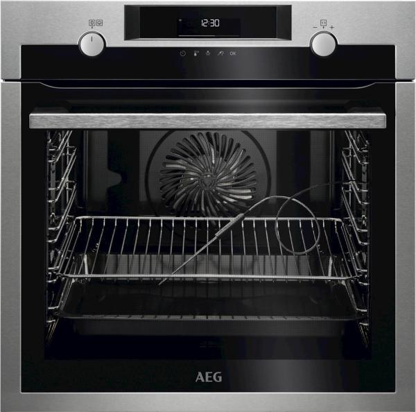 Poleg vseh standardnih funkcij lahko pri tej pečici SteamBake na začetku pečenja s pomočjo gumba PlusSteam dodate paro. Pri kuhanju s paro ostane testo na površini vlažno, da ustvari zlatorjavo in okusno skorjo, medtem ko ostane notranjost mehka in krhka. Poleg pečenja okusnega hrustljavega kruha, muffinov in pit, boste lahko pri pripravi hrane s to pečico lahko uživali tudi v prav tako slastnem in enakomerno pečenem piščancu, praženih rebrcih in lazanjah. Zahvaljujoč tipalu za jedi te pečice lahko med pečenjem merite temperaturo v sredini jedi. Tako ste vsakokrat deležni popolnih rezultatov. Z enim dotikom funkcije pirolitčnega čiščenja se umazanija, maščoba in ostanki hrane spremenijo v pepel, ki ga lahko preprosto obrišete z vlažno krpo. Daljinsko upravljajte pečico, odkrivajte naše različne partnerje in uživajtte v osebno prilagojeni izkušnji kuhanja s pomočjo aplikacije My AEG Kitchen. Je prioročen in enostaven način, da obogatite vašo izkušnjo pametne kuhinje. Odkrijte nov način uporabe vaše pečice z odzivnim prikazovalnikom EXPlore LED s tipkami na dotik. Živahni vmesnik vam omogoča hiter dostop in dinamičen nadzor nad časom kuhanja, temperaturo in drugimi funkcijami.