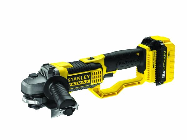 Akumulatorski kotni brusilnik Stanley Fatmax FMC761M2 je 18 V kotni brusilnik z dvema 4,0 Ah Li-Ionskima baterijama. Ima visokozmogljiv motor za hitroz blokado vretena, največji premer diska je 125 mm. Ima vzdržljivo in ergonomično obliko z udobnim gumiranim ročajem za dobro udobje uporabnika. Menjava rezalnih in brusnih plošč je hitra in enostavna. V opremi sta 2 bateriji in polnilnik v kovčku. Lastnosti: - baterija: 2x 18 V, 4,0 Ah, Li-Ion - hitrost: 8.500 /min - premer koluta: 125 mm - vreteno: M14 - čas napajanja: 120 min - masa: 2,9 kg