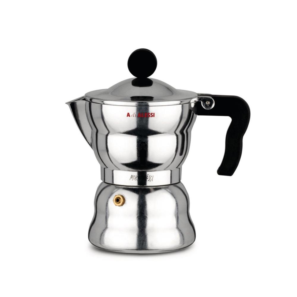 Kafetiera ALESSI MOKA ESPRESSO (za 3 skodelice) ustvarjena izpod rok oblikovalca Alessandra Mendinija, se s svojo prepoznavno oglato obliko močno približa tradicionalnemu izgledu moke. Kafetiera je izdelana iz aluminija z ergonomskim ročajem iz termoplastične mase. Zagotovo je to nepogrešljiv kuhinjski pripomoček za pripravo tradicionalne italijanske espresso kave s prepoznavnim okusom in čudovito aromo, ki vsakodnevno rutino spremeni v pravi obred.