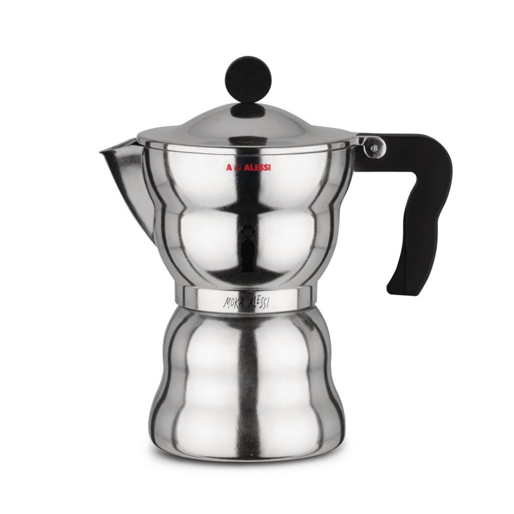 Kafetiera ALESSI MOKA ESPRESSO (za 6 skodelic), ustvarjena izpod rok oblikovalca Alessandra Mendinija, se s svojo prepoznavno oglato obliko močno približa tradicionalnemu izgledu moke. Kafetiera je izdelana iz aluminija z ergonomskim ročajem iz termoplastične mase. Zagotovo je to nepogrešljiv kuhinjski pripomoček za pripravo tradicionalne italijanske espresso kave s prepoznavnim okusom in čudovito aromo, ki vsakodnevno rutino spremeni v pravi obred.