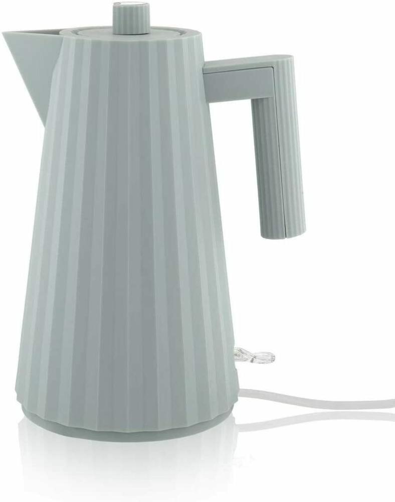 Električni grelnik vode Plissé, ki ga je za blagovno znamko Alessi, oblikoval Michele de Lucchi, združuje funkcionalne vidike s plastičnim in fascinantnim dizajnom, ki razkrivajo ustvarjalčevo arhitekturno ozadje ter njegovo strast do obrti in kiparstva. Grelnik za vodo spominja na plisirano krilo, ki spominjajo na visoko modo. Na prvi pogled je videti kot vrč, ki bi ga našli na mizi v kmečki hiši. Izdelan je iz termoplastične smole s prostornino 1,7 litra in 2400 W. V dolžino meri 21 cm, v širino 16 cm, visok pa je 29 cm.