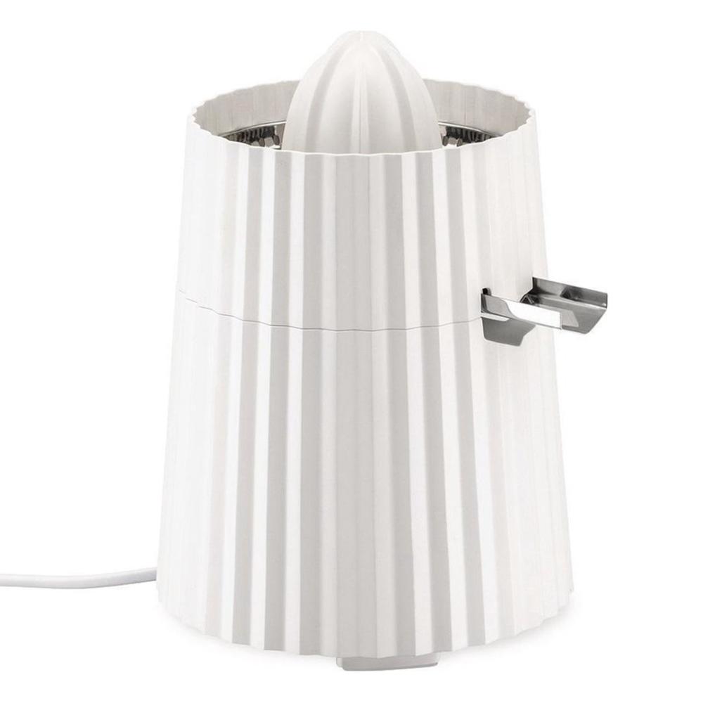 Električni ožemalnik Plissé je kot nalašč za pripravo osvežilnega soka iz citrusov (limone, pomaranče...). Oblikovalec Michele De Lucchi ga je zasnoval tako, da spominja na plisirano krilo in visoko modo. Nagubana struktura iz termoplastične smole daje napravi tridimenzionalno obliko in bo zagotovo dopolnila vaš delovni pult. Ožemalnik agrumov ima priročno start in stop funkcijo. Prav tako je enostaven za čiščenje, saj sta stožec in sito primerna za pomivanje v pomivalnem stroju. Njegov premer je 18,50 cm, višina 28 cm, moč pa 80 W.Michele De Lucchi