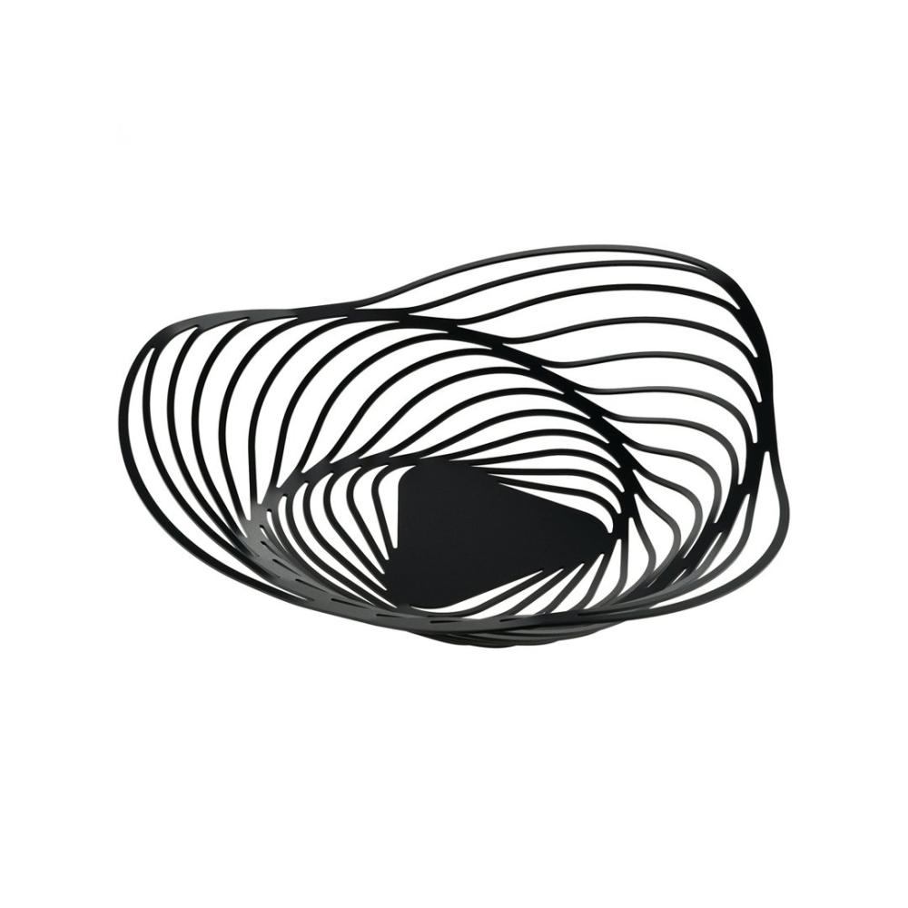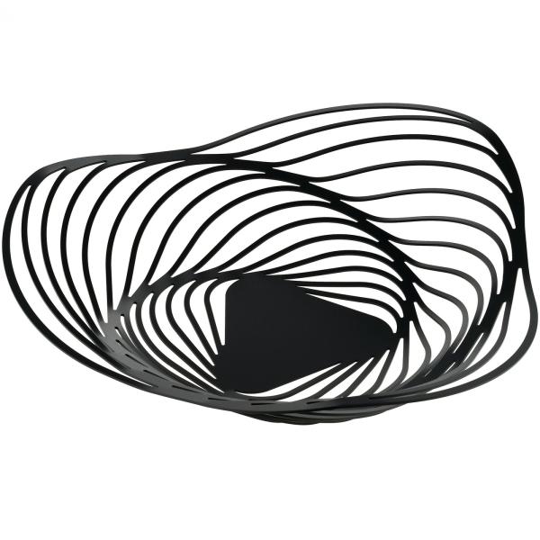 Črna ALESSI TRINITY SKLEDA elegantne geometrične oblike je poleg svoje večnamenske uporabnosti pravzaprav pravi dekorativni element vaše kuhinje ali jedilnice. Oblikovalec Adam Cornish je skušal skozi sodobne procese industrijske proizvodnje reproducirati videz naravnega elementa. Košara je izdelana iz lasersko obdelane jeklene pločevine.