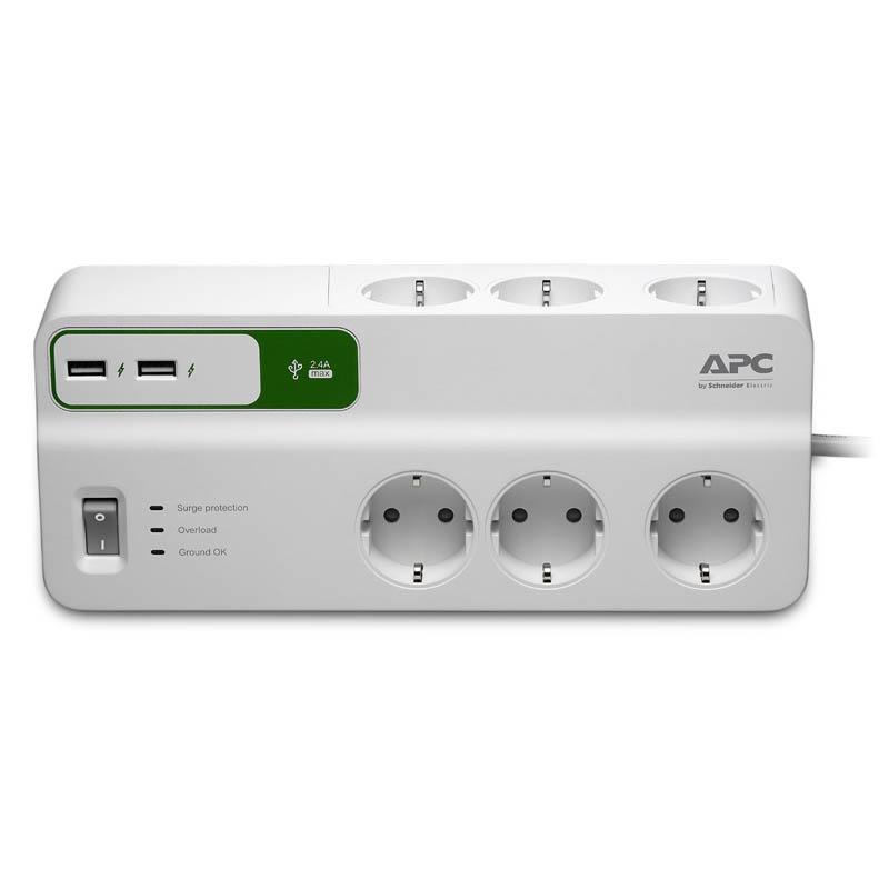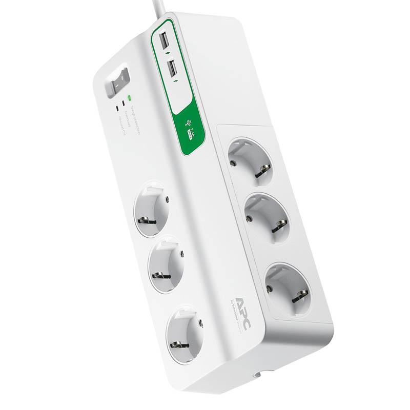 Prenapetostna zaščita APC PM6U-GR s 6 Schuko CEE 7 (230V) priključki zavaruje vaše naprave pred nepredvidenimi dogodki na električnemu omrežju, kot so strele in sunki previsoke napetosti. Dodatno se na napravi nahajata še dva USB izhoda za polnjenje vaših naprav. Zaščita je namenjena za uporabo doma in v pisarnah.