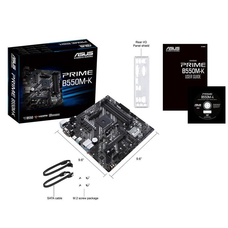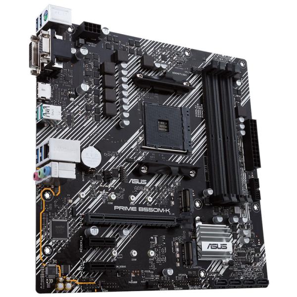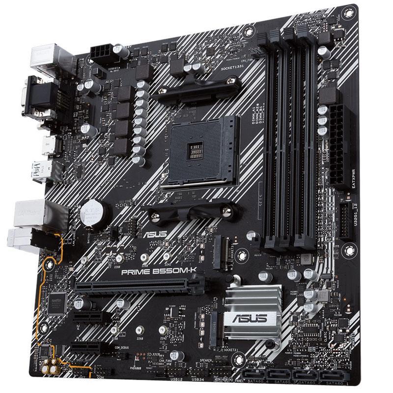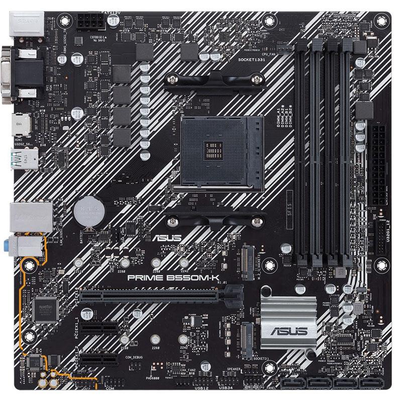 ASUS Prime B550M-K AM4 mATX osnovna plošča s podnožjem AM4 podpira 3. generacijo procesorjev AMD Ryzen in AMD Ryzen z Radeon grafiko.