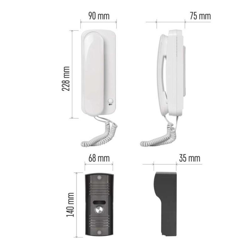 Enostaven avdio domofon set z 1 slušalko je primeren za nezahtevne uporabnike. Zaradi svoje enostavnosti ga lahko namesti skoraj vsak.