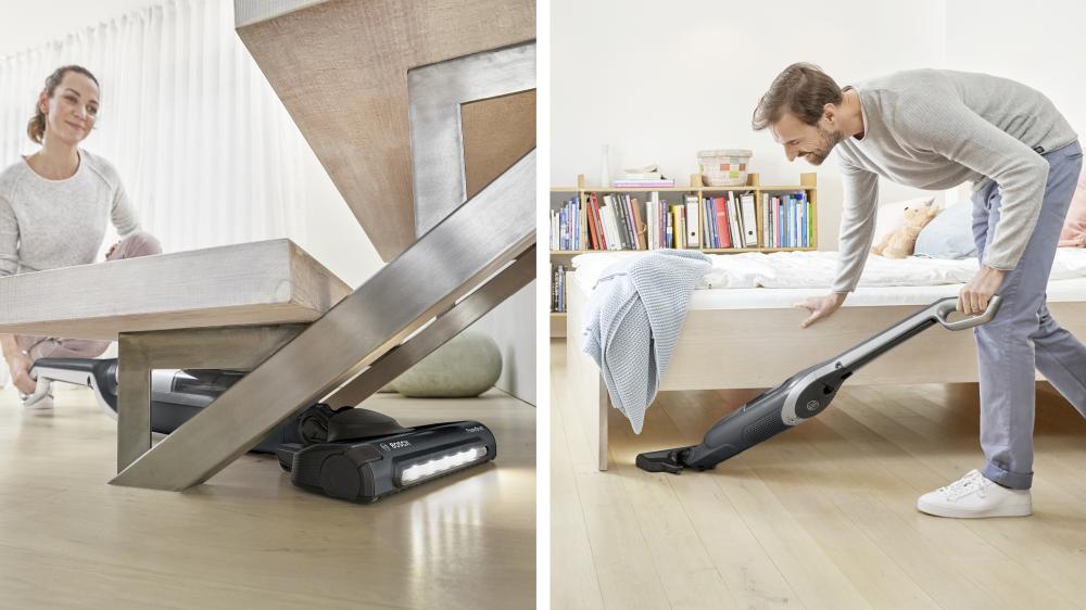 - Maksimalna prilagodljivost: brezžično sesanje brez omejitev, okoli pohištva in pod njim, zahvaljujoč premičnemu zglobu za nastavke