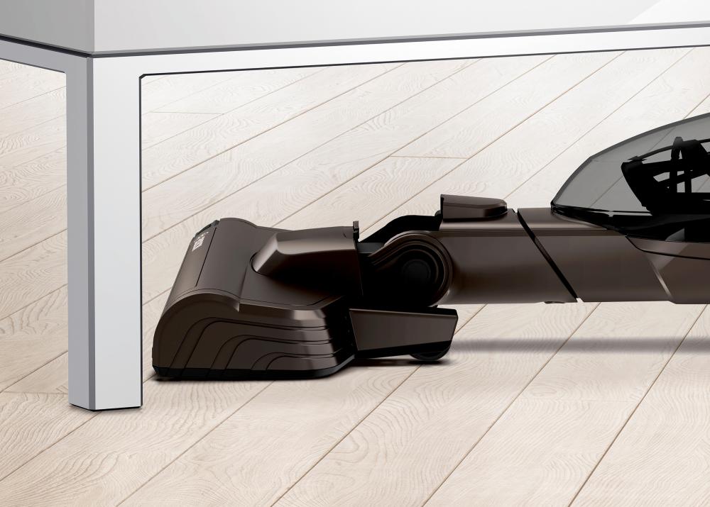 - Maksimalna prilagodljivost: brezžično sesanje brez omejitev, okoli pohištva in pod njim, zahvaljujoč premičnemu zglobu za nastavke