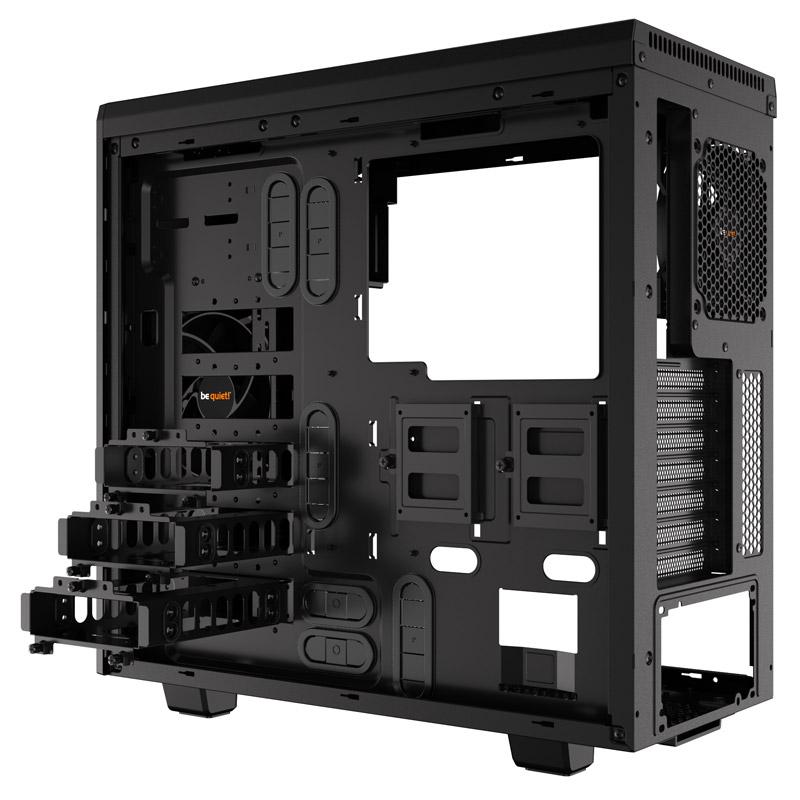 be quiet! Pure Base 600 ohišje ponuja veliko možnosti, kar se tiče izbire komponent. Tri reže za trde diske se lahko premaknejo, da se omogoči namestitev največjih grafičnih kartic, kletka za ODD pa je odstranljiva za največjo prilagodljivost vodnega hlajenja in pogonov.