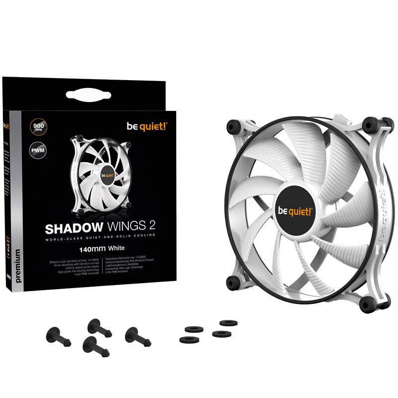 BE QUIET! Shadow Wings 2 ventilator v beli barvi nudi tiho delovanje in zanesljivo hlajenje pri nizkih vrtljajih. Ventilatorji Shadow Wings 2 so odlična izbira za vse, ki cenijo maksimalno tišino za svoj računalnik.