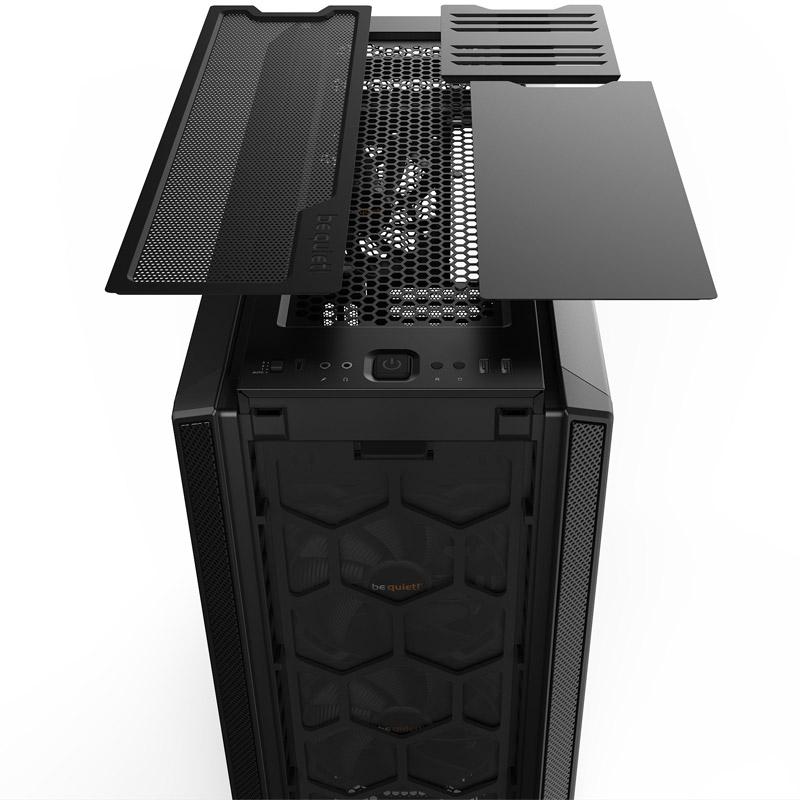 Prvi od dveh vključenih zgornjih pokrovov popolnoma zaokroža zasnovo Silent Base 802 Black in zagotavlja tiho delovanje. Za vse, ki si prizadevajo za izjemno močno hlajenje, še posebej pri sistemih z vodnim hlajenjem, je zelo zračno prepustni zgornji pokrov prava izbira.