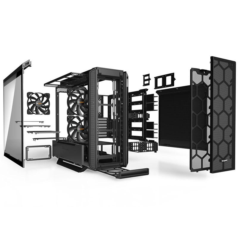 Trije prednameščeni ventilatorji Pure Wings 2 140 mm z lopaticami ventilatorjev, optimiziranimi za pretok zraka, zagotavljajo popoln pretok zraka in trdno hlajenje, ne glede na to, ali ste izbrali konfiguracijo, optimizirano za visok pretok zraka ali tišino.