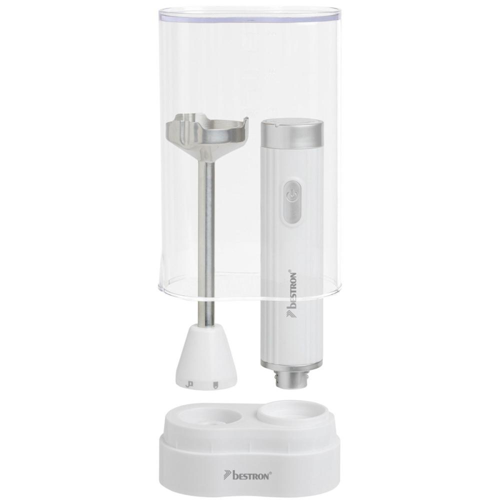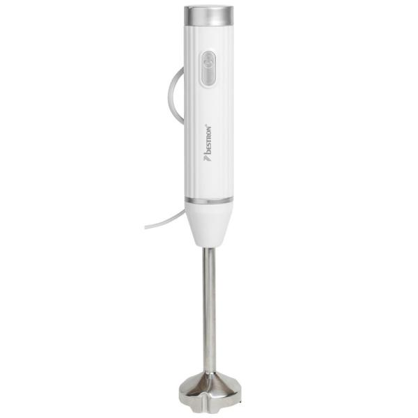 Ročni mešalnik BESTRON AHB400W je močan 400W mešalnik za pripravo mlečnih napitkov, juh, pire krompirja ter omak in je odličen pripomoček za v vsako kuhinjo. Je enostaven za uporabo in čiščenje, saj je nastavek snemljiv in iz nerjavečega jekla in tako omogoča čiščenje v pomivalnem stroju. Na ročaju je brezstopenjsko stikalo za nadzor hitrosti.