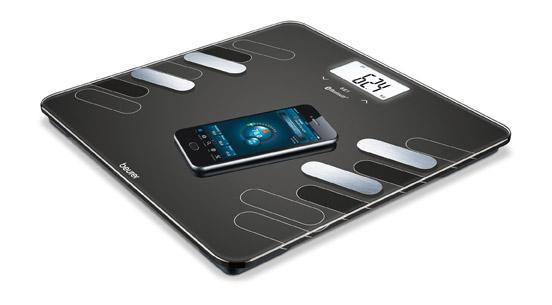 Diagnostična bluetooth tehtnica Beurer BF 600 omogoča inovativno povezavo s pametnim telefonom (brezplačna APP Store + Google Play) in tehtnico za lažje spremljanje vseh meritev in podatkov o telesu tako doma kot na poti.