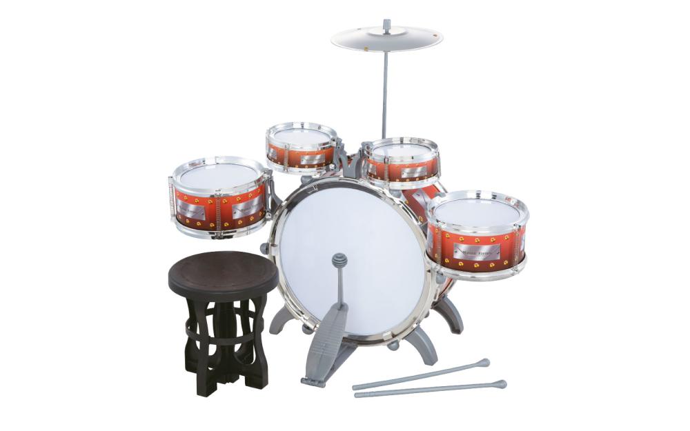 POSTANITE PRAVI GLASBENIK IN ZAIGRAJTE RITMIČNE MELODIJE! Naj vaš otrok odkrije čarobni svet glasbe s tem čudovitim kompletom bobnov! Set je popolna izbira za male glasbene navdušence, ki želijo razvijati svoj ritem in ustvarjalnost. POPOLN KOMPLET ZA IGRANJE. Set bobnov vsebuje vse, kar potrebuje vaš mali bobnar: velik bas boben, dva srednja in dva mala bobna, činele, nožni pedal, dve bobnarski palici ter stolček za udobno igranje. ERGONOMSKA OBLIKA IN PRILAGOJENE DIMENZIJE: velik bas boben: premer cca 29 cm, višina 16 cm, srednji bobni: premer cca 15,5 cm, višina 9 cm, mali bobni: premer cca 11,5 cm, višina 5,6 cm, činele: premer 19 cm, stolček: višina 19 cm, premer sedeža 18 cm (ni primeren za otroke težje od 48 kg), celoten sestavljen komplet: dolžina 60 cm, globina 40 cm, višina 50 cm. RAZVIJA MOTORIČNE SPOSOBNOSTI IN RITEM. Igranje bobnov pomaga otrokom razvijati občutek za ritem, izboljšuje koordinacijo ter spodbuja glasbeno izražanje. To je odličen način, da otroci skozi igro pridobijo prve glasbene izkušnje! Naj se zabava in glasbeno ustvarjanje začneta!