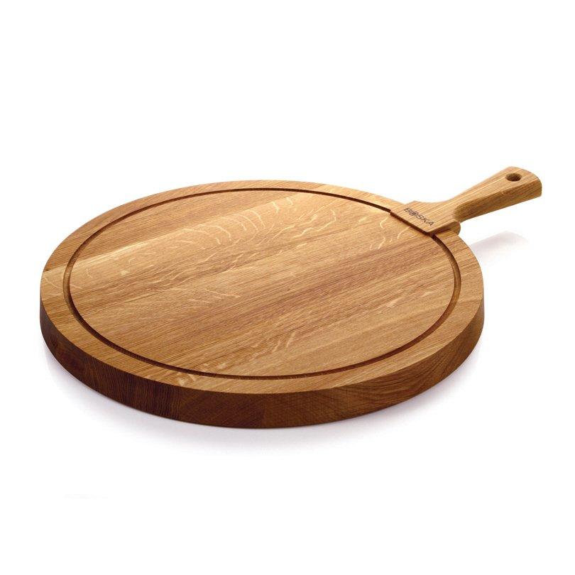 Lesena plošča BOSKA je zaradi svoje priročne velikosti primerna za vsako priložnost. Njen eleganten in rustikalen videz bo pritegnil pozornost vaših gostov. Postrezite na njej suhe mesnine, sire, na koščke narezano pico, tapase … in razveselite prijatelje. Lahko jo uporabite za rezanje, sekanje ali serviranje. Les iz evropskega hrastovega lesa je obstojen in odporen proti bakterijam.