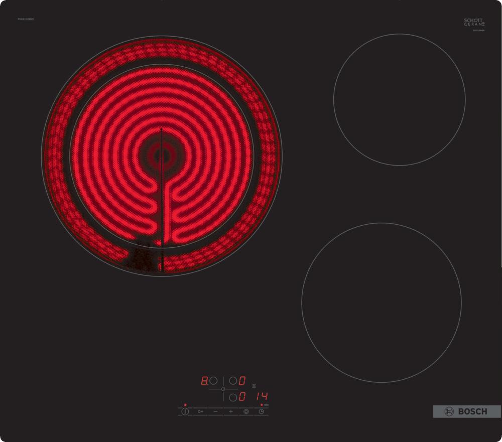 Bosch PKK611BB2E, Steklokeramična kuhalna plošča