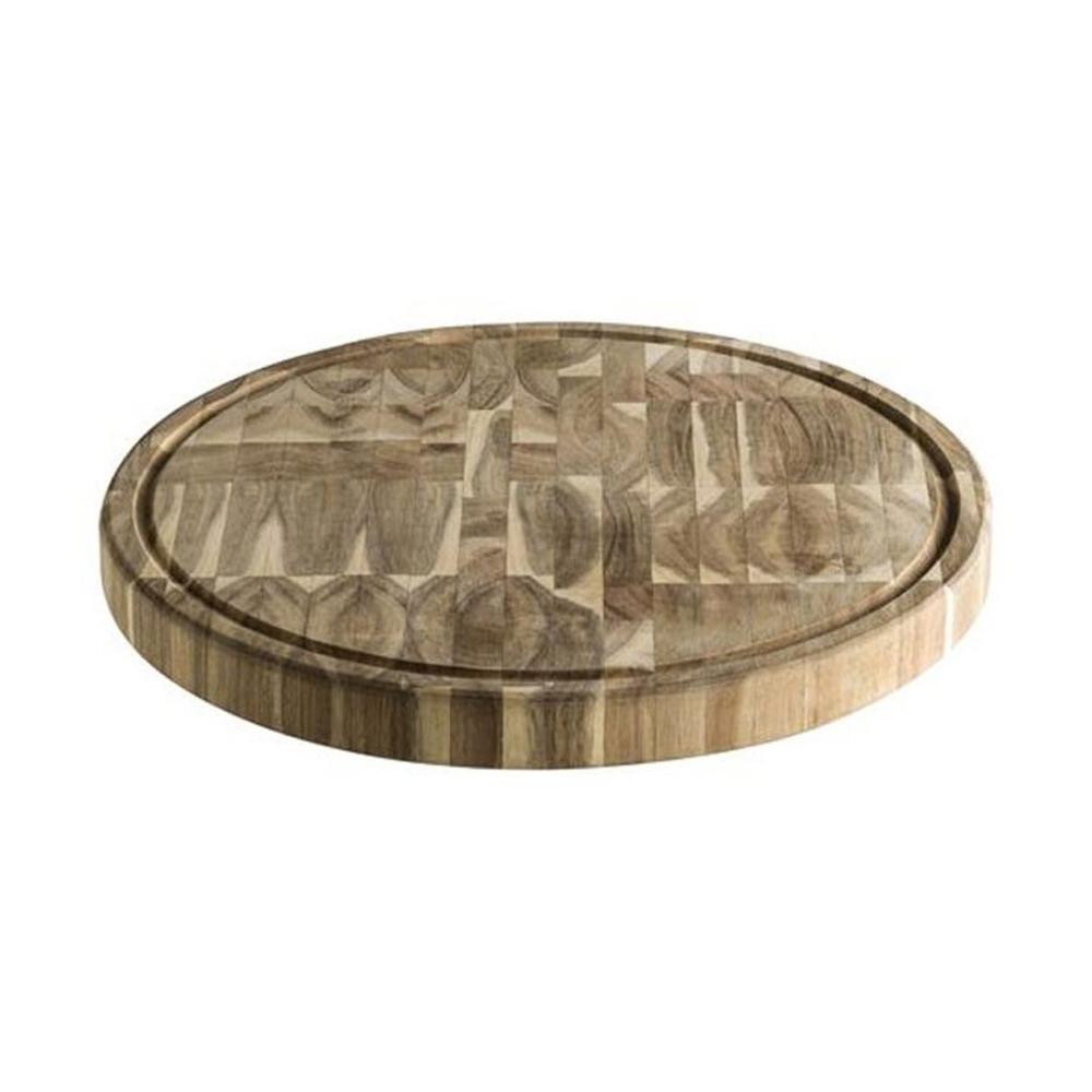 Odpornost, trdnost in estetika krasijo Brandanijevo desko za rezanje Maxi. Izdelana je iz akacijevega lesa, ki zagotavlja odlično rezanje, izraža sodobnost in nov koncept uporabe. Zaradi premera 40 cm in višine 3,5 cm je praktična in estetsko privlačna. Njena okrogla oblika in velikost bosta dodali vrednost vaši kuhinji in vnesli pridih narave. Primerna je tudi za serviranje, suhih mesnin, sirov, pekovskih izdelkov in ostalih prigrizkov. Pomijte jo ročno.