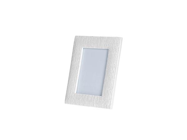 Preprost in eleganten bel okvir Intreccio iz poliresine (vrsta umetne smole) je lahko popoln dodatek za zbiranje najlepših spominov vašega življenja v obliki slik dimenzije 13 x 18 cm. Okvir spominja na pletenino, ki jo krasijo drobne bleščice. Lahko ga postavite navpično ali vodoravno.