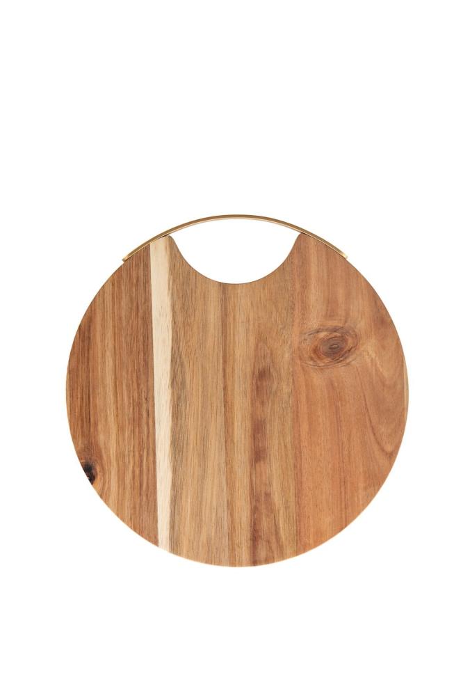 Brandani Deska za rezanje okrogla les-akacija 30cm ročaj v zlati barvi
