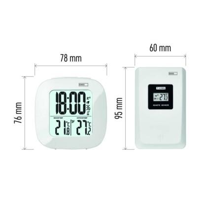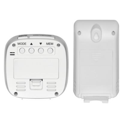 Brezžični termometer s prikazom zunanje in notranje temperature. Termometer ima brezžični senzor z dosegom do 30 m.
