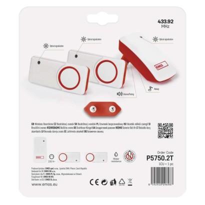 Brezžični hišni zvonec P5750.2T za vtičnico, brez uporabe baterij, z 2 tipkama