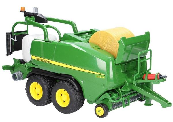Bruder John Deere balirka z ovijalnikom 02032 – Ta žetveni stroj je novost v svetu BRUDERjeve kmetijske tematike. Pri tem so se ponovno osredotočili na najvišjo raven podrobnosti in funkcionalnosti. Funkcionalni pobiralnik je premičen in nastavljiv po višini. Z loputo na vrhu lahko mladi kmetje vstavijo priložene slamnate bale. Z razvojem novega transportnega sistema se lahko slamnate bale iz komore za stiskanje prepeljejo v enoto za ovijanje, postopek spravila pa zaključi vrteči se ovijalnik folije. Za še večjo podobnost z izvirnikom je v kompletu tudi zavita slamnata bala.
