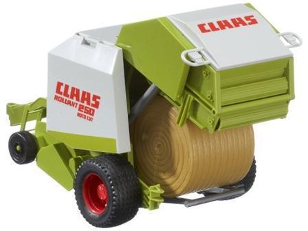 Bruder Balirka Claas Rollant 250 02121 – Balirko poganjajo valjčni podajalniki. Stranski pokrov in zadnjo stiskalnico je mogoče odpreti. Vložena bala se samodejno odvrže z aktiviranjem odlagalnega mehanizma. Balirko je mogoče pritrditi z vlečno kljuko (ovijalo za bale ni priloženo). Komplet je dopolnjena z eno okroglo balo in pnevmatikami s tekalno površino. Za še večji užitek pri igranju je mogoče stiskalnico za okrogle bale Claas Rollant 250 kombinirati z vsemi traktorji serije Profi ter ovijalko za bale, št. izdelka: 02122, stiskalnice za okrogle bale (št. izdelka: 02344) so na voljo tudi ločeno.
