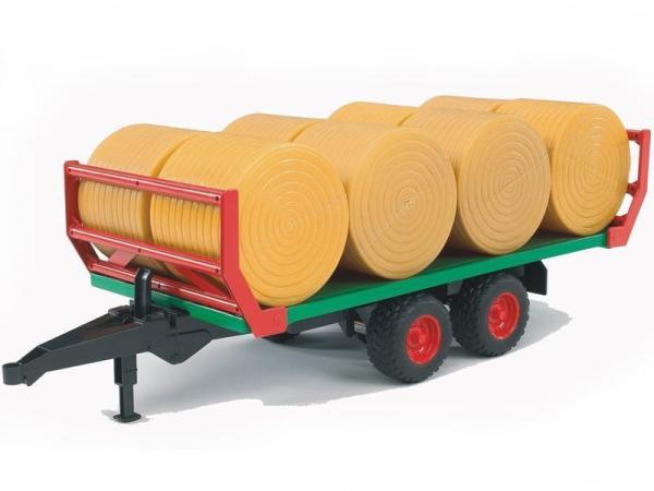 Bruder prikolica z balami 02220 – Kmetje morajo okrogle bale, ki jih jeseni vidimo na poljih, učinkovito prepeljati v hleve in skednje. Vozilo, ki ga običajno uporabljajo za ta prevoz, je posebna prikolica, ki je zdaj vključena v našo ponudbo izdelkov. Bruderjev model odlikujejo zložljivi stebrički in je opremljen z 8 okroglimi balami. Za natovarjanje prikolic lahko uporabite vse Bruderjeve traktorje, ki so opremljeni s sprednjim nakladalnikom in priključkom za vilice, kar vam omogoča, da prikolico združite s traktorjem v igralni set. Še en odličen način za dopolnitev tega kompleta je Claas balirka (št. izdelka 02121), priključek za baliranje John Deere (št. izdelka 02017) ali priključek za ovijanje bal (št. izdelka 02122).