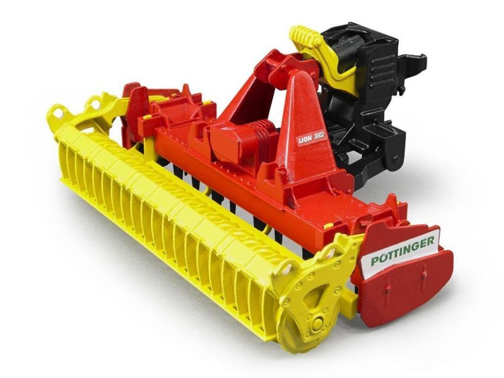 Bruder priključek Pöttinger Lion 3002 02346 je zasnovan za obdelovanje tal v kmetijstvu in se uporablja predvsem za pripravo sejalnega polja pred setvijo. S posebnim adapterjem BRUDER se lahko priključi na skoraj vsa vozila iz linije traktorjev BRUDER. Vgrajeni mehanizem za dvigovanje omogoča dvigovanje in spuščanje enote, otroci pa lahko natančno simulirajo dejanski položaj pri prevozu in delu. Ko deluje v delovnem položaju, vrtljivi tlačni valj brane obdeluje zemljo, številne dodatne podrobnosti pa poudarjajo vizualni učinek vozila in otrokom omogočajo, da se z njim igrajo na še bolj realističen način.