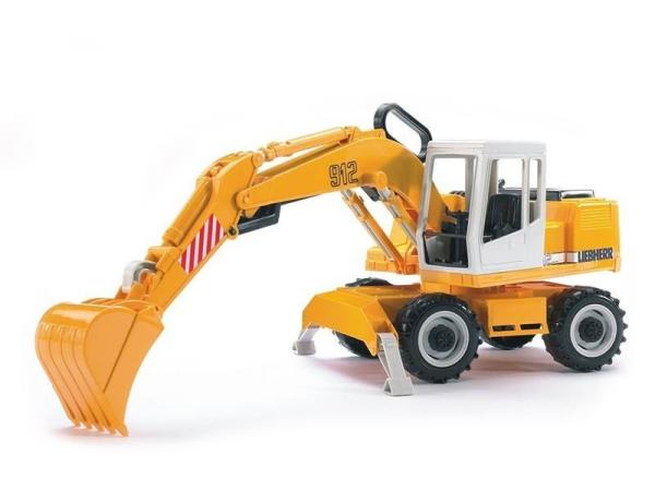 Bruder kopač Liebherr 02426 – Ročica kopača Liebherr je popolnoma funkcionalna s pritiskom na ročni vzvod, kabino in roko pa je mogoče na podvozju obrniti za 360°. Dve podporni nogi zagotavljata stabilnost.