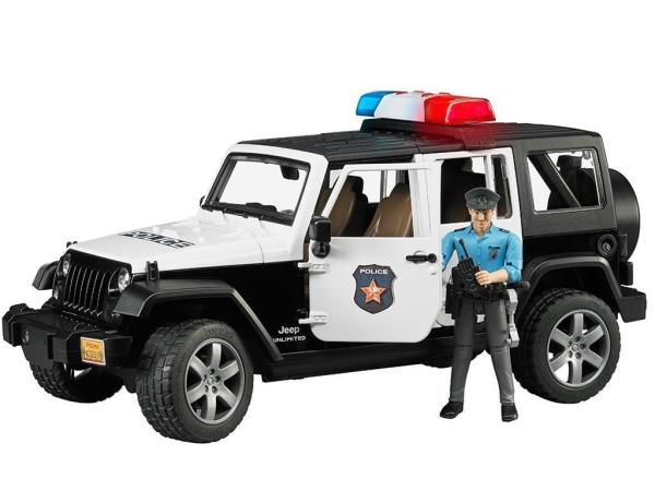 Dodatni podaljšek volana je namenjen lažjemu krmiljenju skozi streho, če ga ne potrebujete, pa ga lahko shranite v podvozje vozila. Osi imajo tipično vzmetenje terenskih vozil in tekalne pnevmatike s kolesi v privlačni zasnovi SUV. Sprednji vmesnik, primeren za elemente, vključno z opcijsko razpoložljivim kabelskim vitlom in snemljivo vlečno kljuko, pomeni, da so možnosti za izboljšave v svetu BRUDER neomejene. Policijska različica modela Jeep ima na novo razvit svetlobni in zvočni modul s štirimi funkcionalnimi gumbi (1. zvok motorja, 2. policijska sirena, 3. gasilska sirena, 4. jurišni signal). Policist bworld je v celoti opremljen za krepitev avtoritete. Na njegovem pasu so pomembna orodja za vsakodnevno policijsko delo, kot so svetilka, radijska naprava in palica.