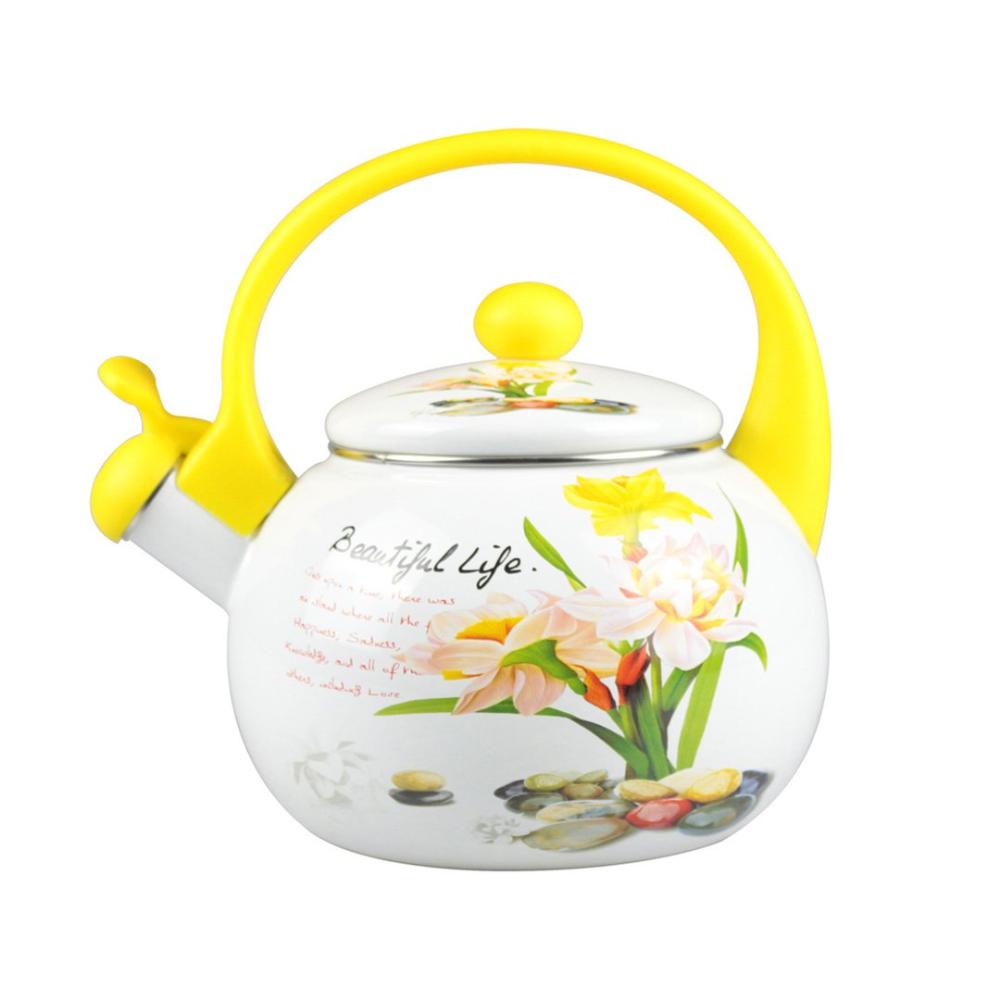 HOP ČAJNIK je funkcionalen in igriv čajnik s prostornino 2,2 l in motivom lilij ter napisa Beautiful life. Rumen ročaj in piščalka poudarjata njegovo eleganco. Izdelan je iz emajla, ki je zelo cenjen zahvaljujoč svoji nerjaveči površinski obdelavi, visoki higieni in lahkemu čiščenju. Čajnik je lahko uporabljate na vseh kuhalnih površinah, tudi na indukciji.