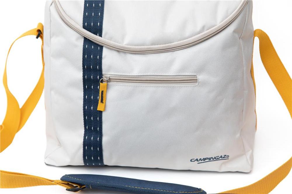 Elegantna hladilna torba iz okolju prijaznega materiala REPREVE Poliester. Notranji material je enostaven za pranje in je protimikrobno obdelan. Spodnji del vrečke je opremljen z materialom, ki ščiti vrečko pred večjimi kontaminacijami.