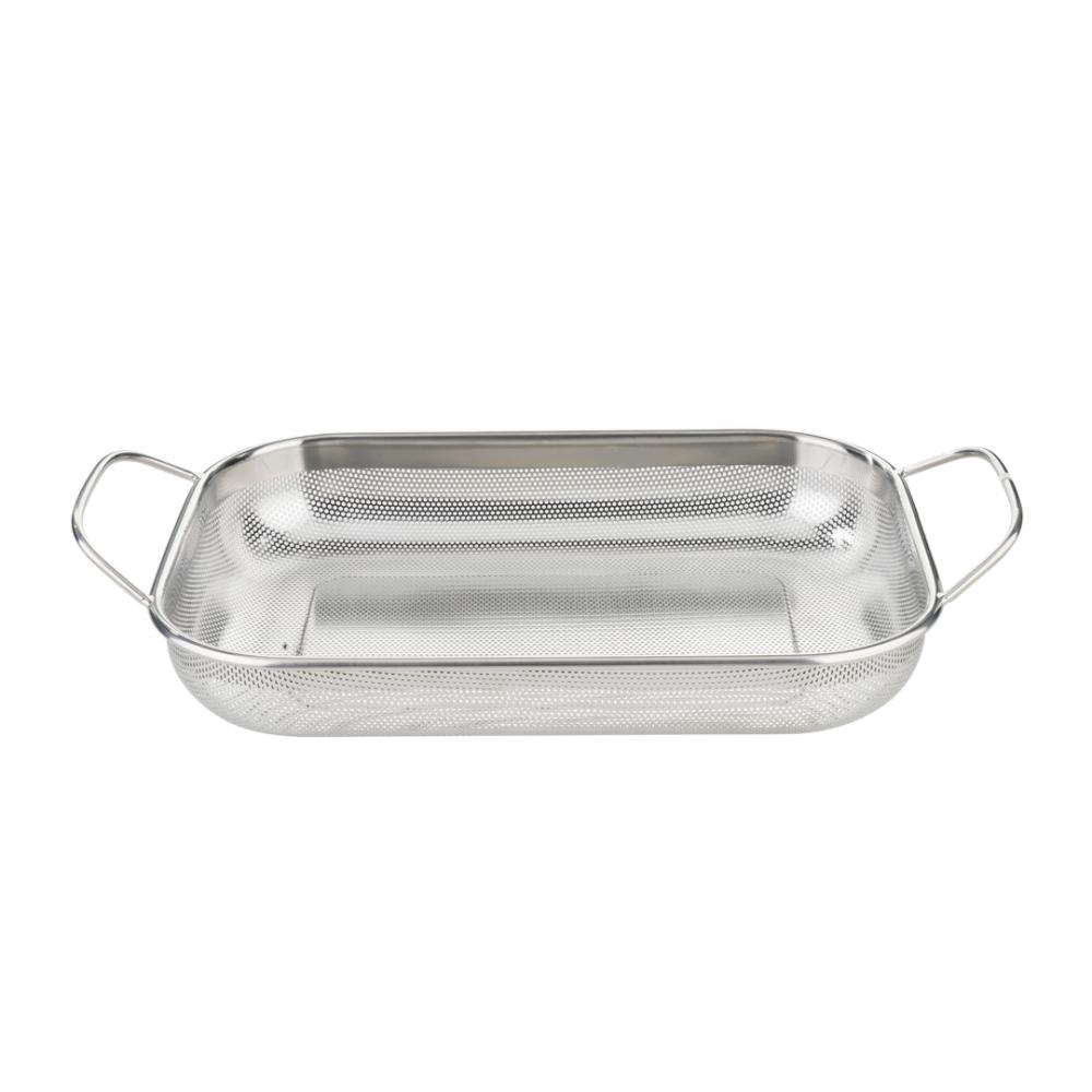 Eva Pravokotno cedilo z dvema ročajema iz nerjavečega jekla. Primerno je za pomivanje v pomivalnem stroju.