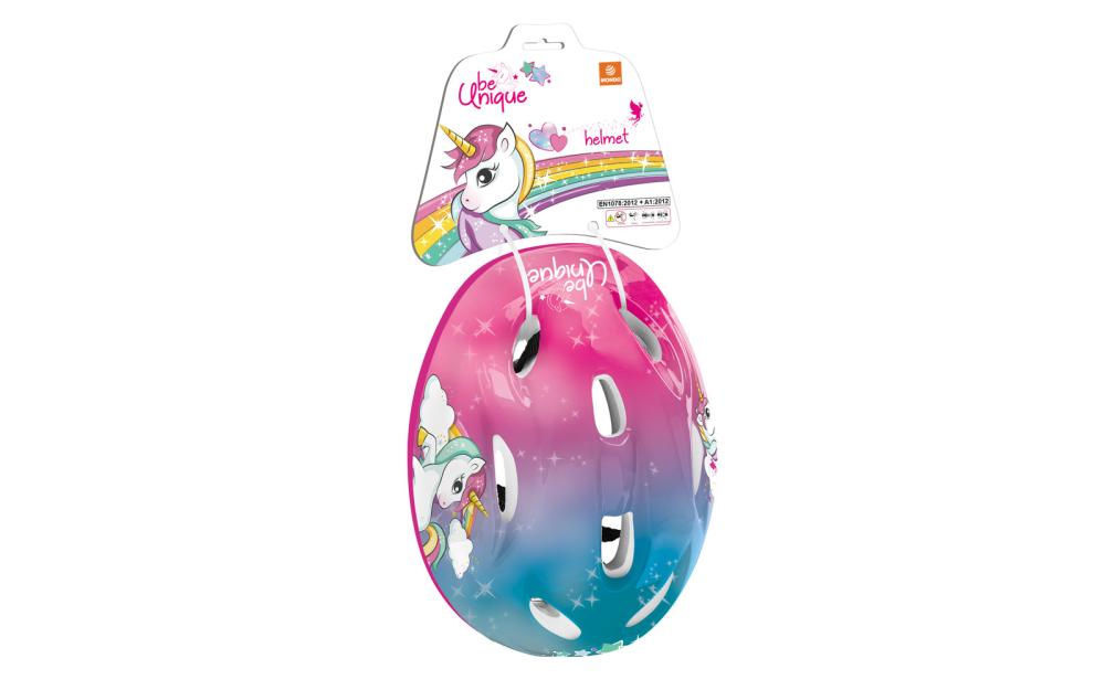 Čelada italijanskega podjetja Mondo s priljubljenim motivom Unicorn. Otrok lahko čelado uporablja pri kolesarjenju, rolkanju, kotalkanju in rolanju ter tako zmanjša možnosti morebitnih poškodb ob padcu. Čelada ima nastavljivo velikost - 52/56.
