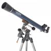 Teleskop Celestron AstroMaster 70 EQ se ponaša z CG-2 ekvatorialno montažo in 165 kratno največjo povečavo. Ima priložen okular premera 20 mm, ki ima 45 kratno povečavo ter