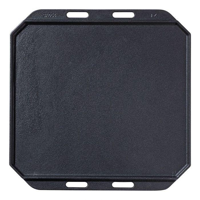 Litoželezna žar ponev je reverzibilna z gladko in rebrasto površino za žar. Z odstranljivim ročajem lahko enostavno obračate med gladko in rebrasto površino litoželezne ponve.