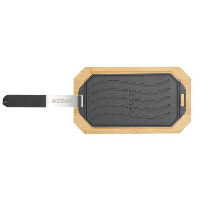 Litoželezna žar ponev Cozze 90326 je popolna za cvrtje rib, mesa, zelenjave in še veliko več. Edinstven ročaj je snemljiv in je priprava zelo priročna. Vključno s podstavkom za žar ponev iz bambusovega lesa.