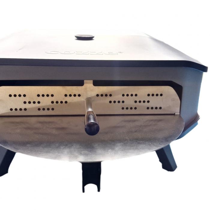 Pizza pečica Cozze je opremljena s termometrom na vrhu ohišja, kar omogoča sprotno spremljanje temperature. Priložen je trden kamen za pico iz kordierita, ki ga je odobril LFGB.