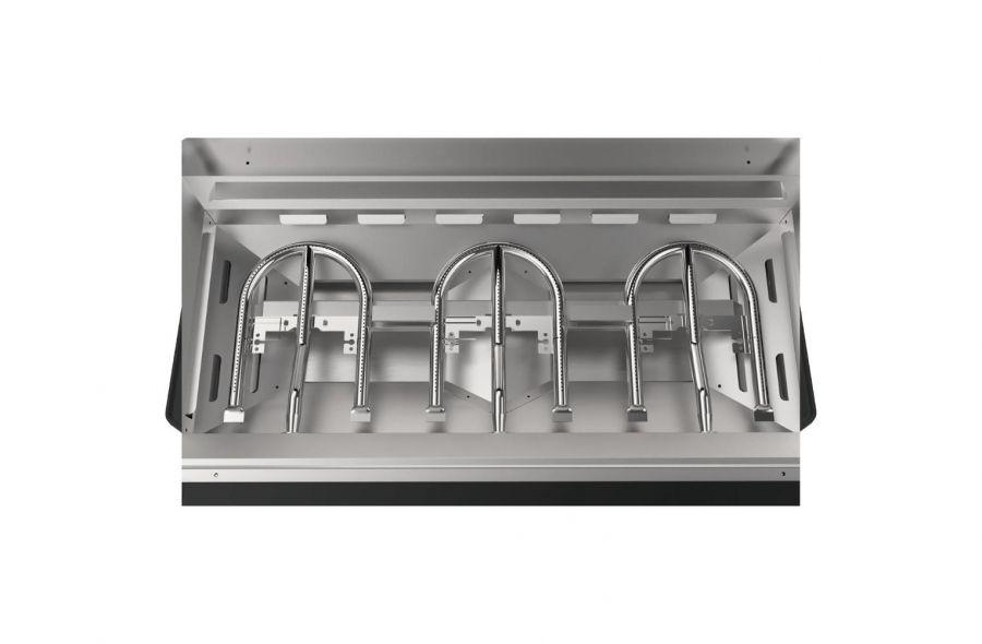 Žar plošča je izdelana iz litega železa za optimalno ohranjanje toplote, zato je primerna za pečenje kozic, hamburgerjev, slanine, jajc, rib in drugih občutljivih jedi. Eksperimentirate lahko z različnimi sestavinami in ustvarite različne okusne jedi, ki bodo navdušile vaše goste in zadovoljile vaše brbončice. Za enakomerno porazdelitev toplote in visoko temperaturo po celotni površini žara skrbijo 3 gorilniki v obliki črke U pod žar ploščo.