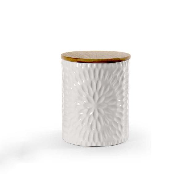 Doza za piškote - Cre biškotiera z lesenim pokrovom h16cm / keramika