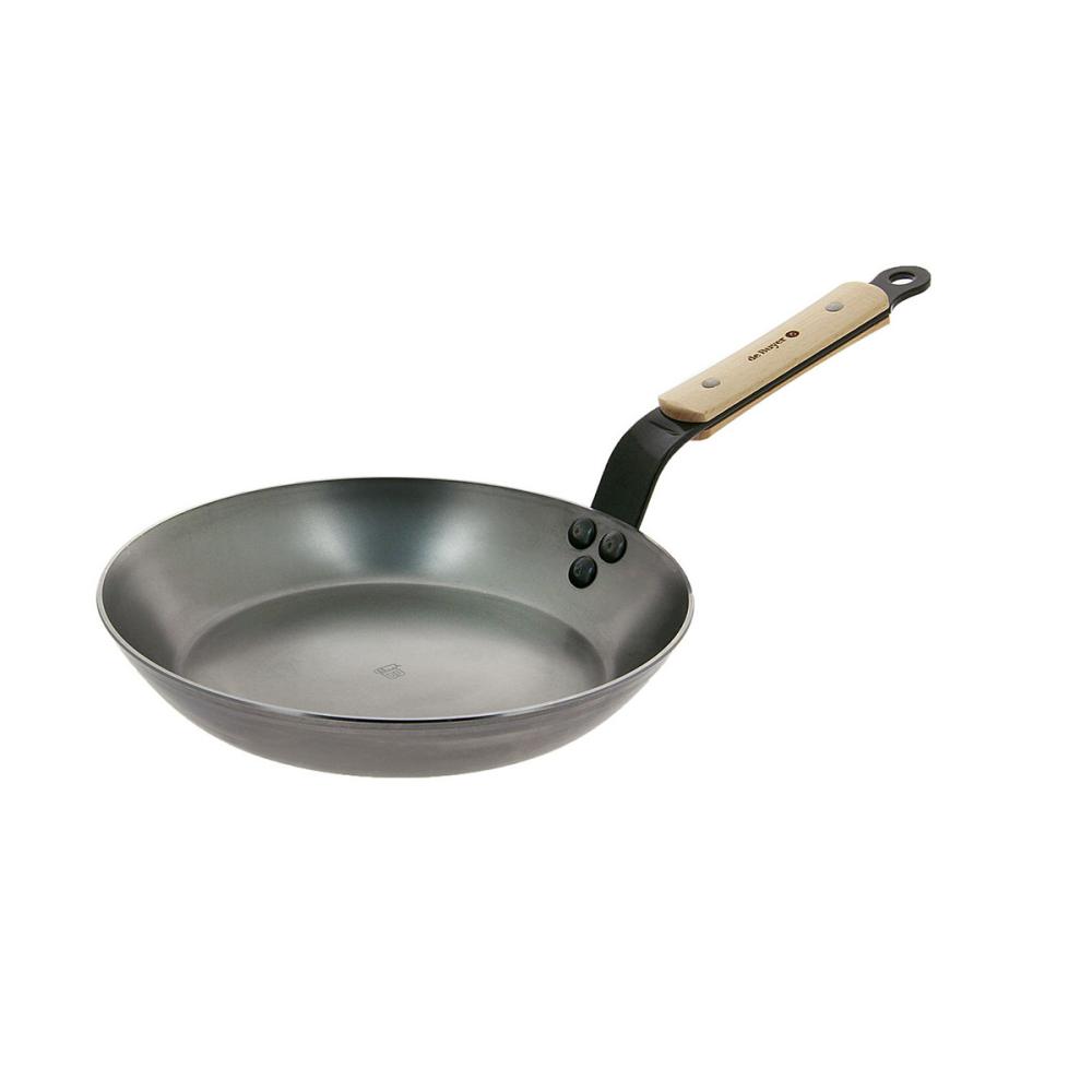 Nizka ponev De Buyer MINERAL B BOIS s premerom 24 cm (in notranjim premerom dna 17,5 cm) je izdelana iz visokokakovostnega železa, prevlečenega s čebeljim voskom, ki ustvari zaščitni premaz pred oksidacijo, hkrati pa je to tudi naravna obloga proti sprijemanju živil pri prvi uporabi. Čebelji vosek tudi odlično prispeva k začinjenosti jedi. Ukrivljen ročaj v francoskem slogu je z obeh strani obdan z bukovim lesom, ki ga proizvajalec pridobiva iz trajnostno upravljanih gozdov Vosges. Tudi ta je dodatno zaščiten s premazom iz čebeljega voska. Z železno ponvijo jedi zlahka popečete, prepražite, primerna je za cvrenje, z njo pripravite odlično zapečene zrezke … Vsaka nadaljnja uporaba ponve izboljša lastnosti naravnega nelepljivega sloja, pri visokih temperaturah pa železo še dodatno karamelizira sokove in naredi jedi še bolj okusne in sočne. Ponev je primerna za vse kuhalne površine, vključno z indukcijo. Ne uporabljajte detergentov in ponve ne vstavljajte v pomivalni stroj. Po vsaki uporabi jo sperite z vročo vodo, jo osušite, nato pa jo rahlo premažite z oljem in shranite v suhem prostoru, da preprečite rjavenje. Ponev bo z uporabo postala temnejša, vendar z upoštevanjem pravil rokovanja z železno posodo bo del vaše kuhinje še desetletja.Francoski proizvajalec De Buyer je vodilni na področju proizvodnje visokokakovostne kuhinjske posode in kuhinjskih pripomočkov že od leta 1830. Vsi njihovi izdelki so narejeni iz 100% naravnih materialov, prav tako je okolju prijazen tudi sam postopek izdelave. Posoda je namenjena vsem tistim, ki dajejo velik poudarek zdravemu načinu kuhanja, skrbi za okolje, prisegajo na visoko kakovost materialov, polnost okusov in sledijo tradiciji v kuhanju. Primerna je tako za domača gospodinjstva kot za profesionalno uporabo, posoda De Buyer namreč svoj svetovni ugled uveljavljala v najprestižnejših hotelih in restavracijah.