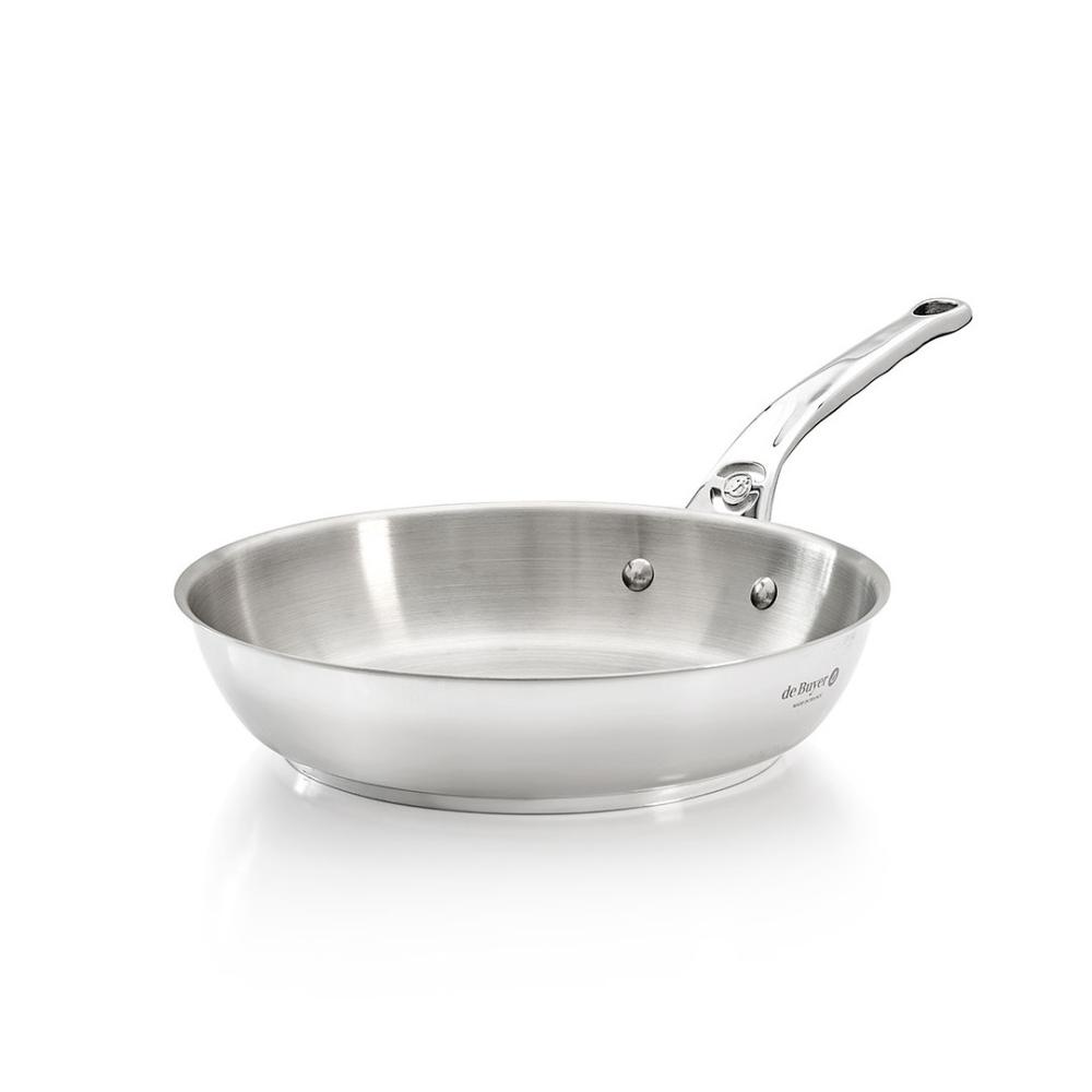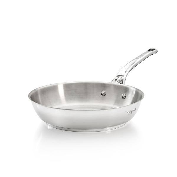 De Buyerjeva PONEV MILADY s premerom 28 cm je idealna za cvrenje, praženje, pečenje in sotiranje. Njeno ojačano večplastno dno s premerom 21 cm se hitro segreje, primerno pa je za vse kuhalne površine, vključno z indukcijo. Toplota se popolnoma porazdeli po celotnem dnu posode. Linija kuhinjske posode MILADY je učinkovita, vzdržljiva in robustna, hkrati pa z dovršenimi detajli izraža prav posebno eleganco. Ponev je narejena iz nerjavečega jekla profesionalne kakovosti (AISI 304), debeline 0,8 mm, brez ostrih robov. Zakovičeni ergonomski ročaj iz litega nerjavečega jekla, ukrivljen v francoskem slogu (z elegantnim logotipom blagovne znamke), zagotavlja dober, čvrst oprijem, hkrati pa omogoča, da med kuhanjem držite roko stran od vira segrevanja. Zrcalno polirani zaključek daje ponvi popoln sijaj in poudarja razkošnost linije. Ponev je primerna za pomivanje v pomivalnem stroju. Priporočilo: po potrebi posodo na zunanji površini namažite s polirno maso za popolno povrnitev prvotnega sijaja.