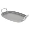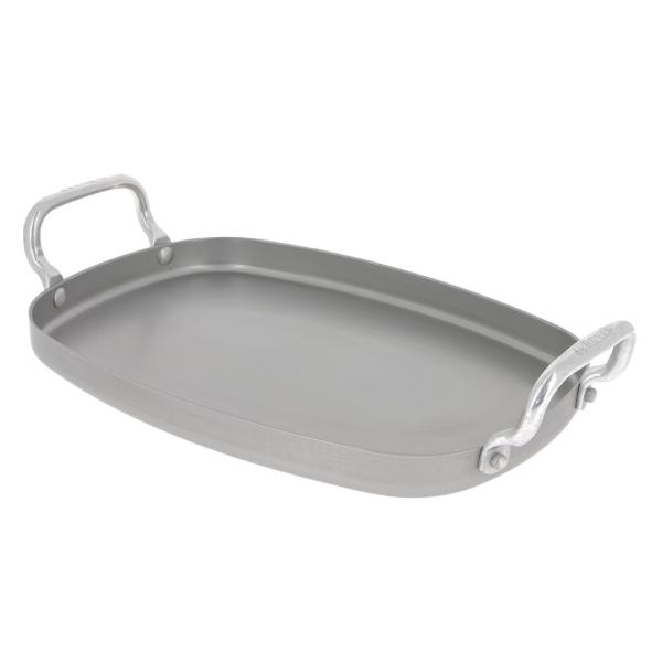 Gladka ponev za žar DE BUYER »Plancha« z dimenzijami 38 x 26 cm je odlična za peko mesa brez maščobe. Ravno tako je idealna tudi za pripravo pokrovač, kozic, rib, zelenjave … Ponve iz linije MINERAL B so narejene iz visokokakovostnega železa, prevlečenega s čebeljim voskom, ki ustvari zaščitni premaz pred oksidacijo, hkrati pa je to tudi naravna obloga proti sprijemanju živil pri prvi uporabi. Z vsako nadaljnjo uporabo ponve se izboljša lastnost naravnega nelepljivega sloja. Ponev lahko uporabljate na vseh kuhalnih površinah, vključno z indukcijo, gospodinjsko pečico in na vročem oglju. Opremljena je z dvema robustnima ročajema iz nerjavečega jekla za enostavno prijemanje. Ne uporabljajte detergentov in ponve ne vstavljajte v pomivalni stroj. Po vsaki uporabi jo sperite z vročo vodo, jo osušite, nato pa jo rahlo premažite z oljem in shranite v suhem prostoru, da preprečite rjavenje. Ponev bo z uporabo postala temnejša, vendar z upoštevanjem pravil rokovanja z železno posodo bo del vaše kuhinjske posode še desetletja.Francoski proizvajalec De Buyer je vodilni na področju proizvodnje visokokakovostne kuhinjske posode že od leta 1830. Vsi njihovi izdelki so narejeni iz 100% naravnih materialov, prav tako je okolju prijazen tudi sam postopek izdelave. Posoda je namenjena vsem tistim, ki dajejo velik poudarek zdravemu načinu kuhanja, skrbi za okolje, prisegajo na visoko kakovost materialov, polnost okusov in sledijo tradiciji v kuhanju. Primerna je tako za domača gospodinjstva kot za profesionalno uporabo, posoda De Buyer namreč svoj svetovni ugled uveljavljala v najprestižnejših hotelih in restavracijah.